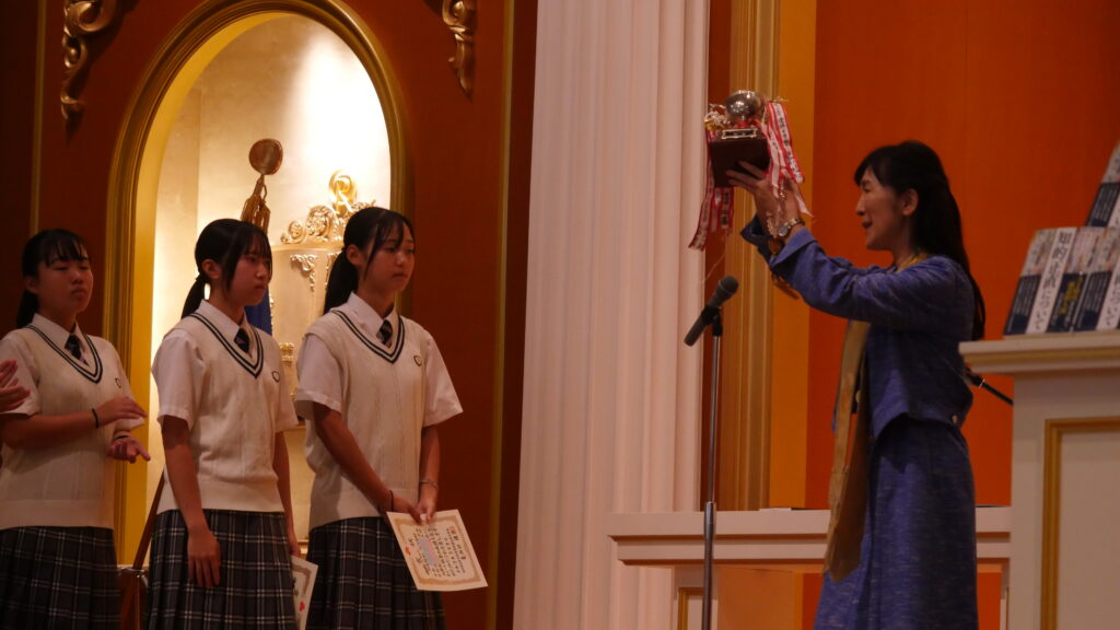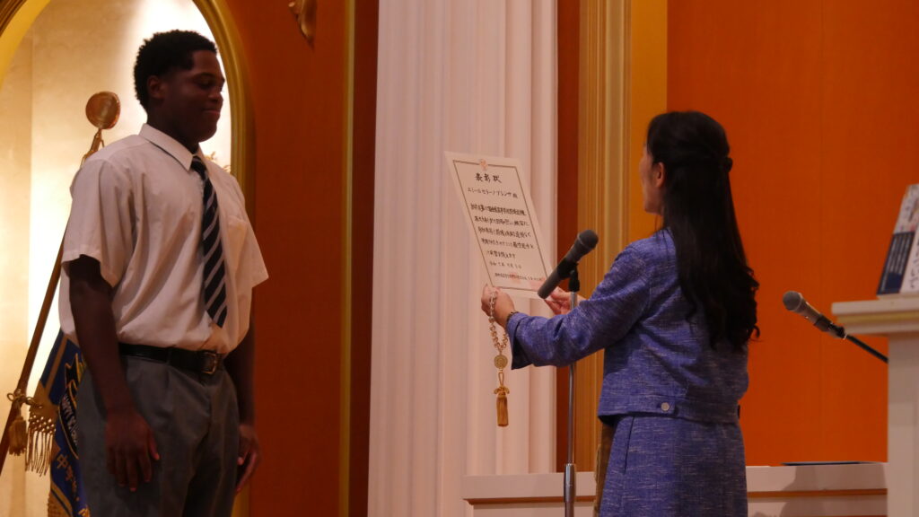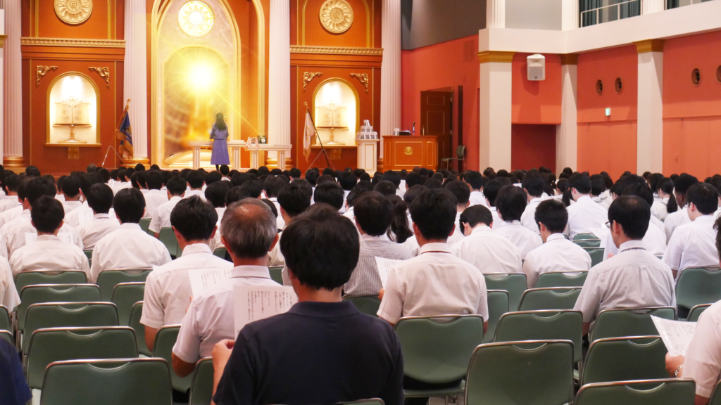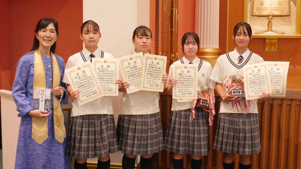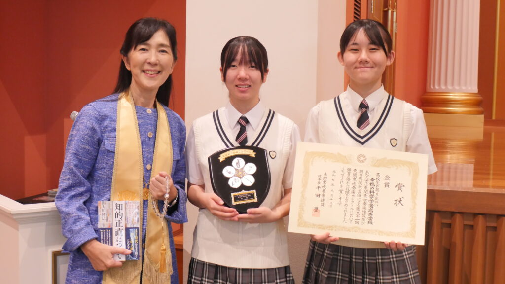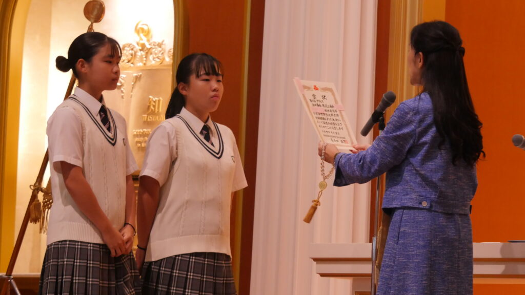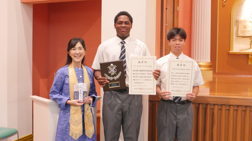七の日式典の中では、生徒を代表し、生徒会長が経典を拝受しました。