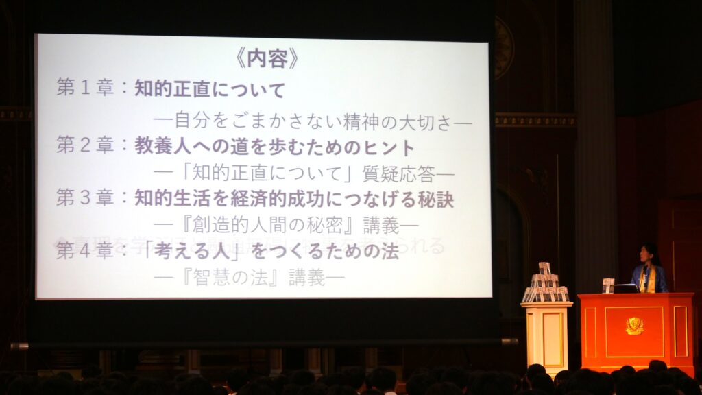また、本日は、新刊『知的正直について』学園生の拝受式の日です。