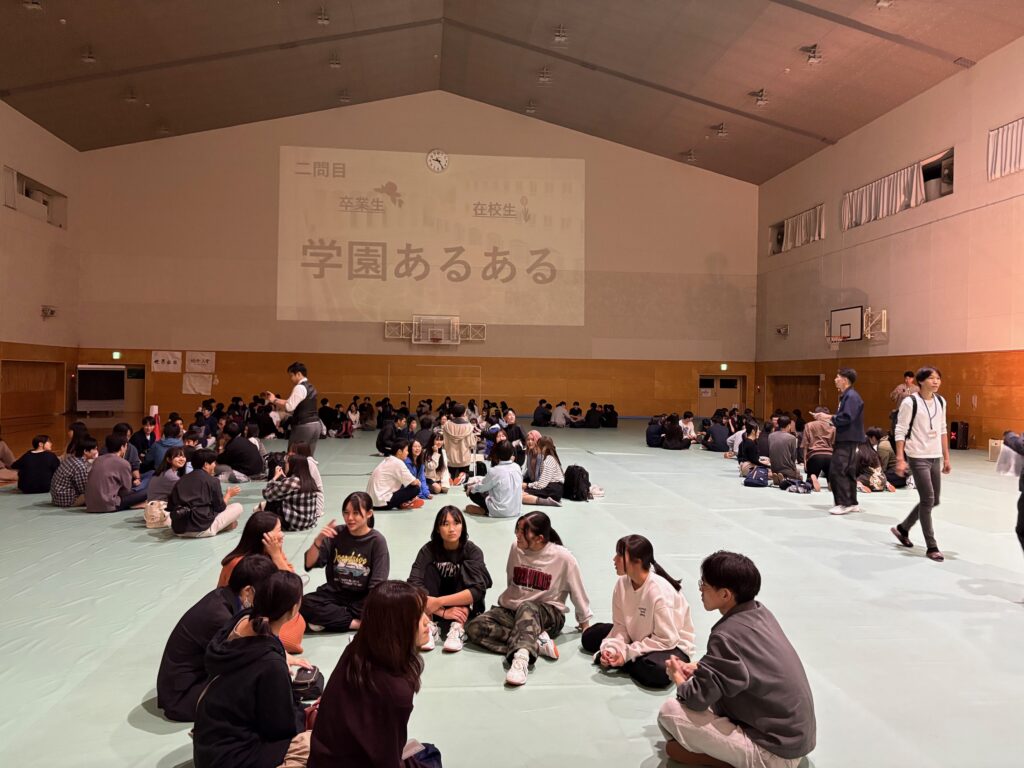 「卒業生の話が聞きたい」と、多くの在校生が体育館に集まり、交流が始まります。