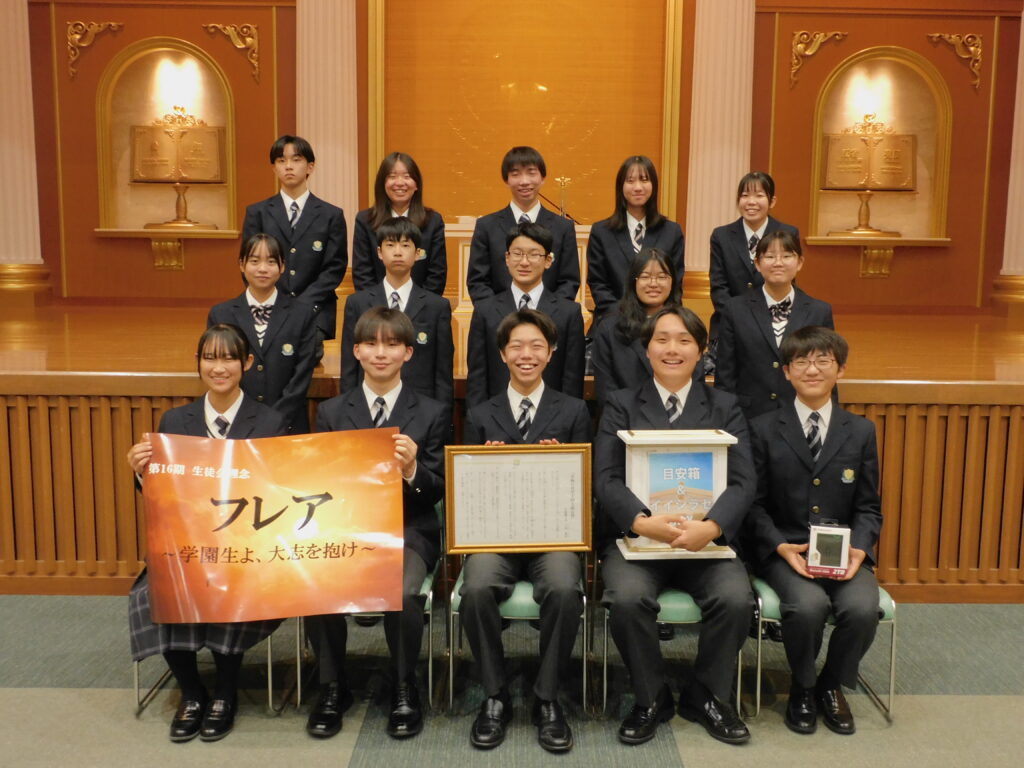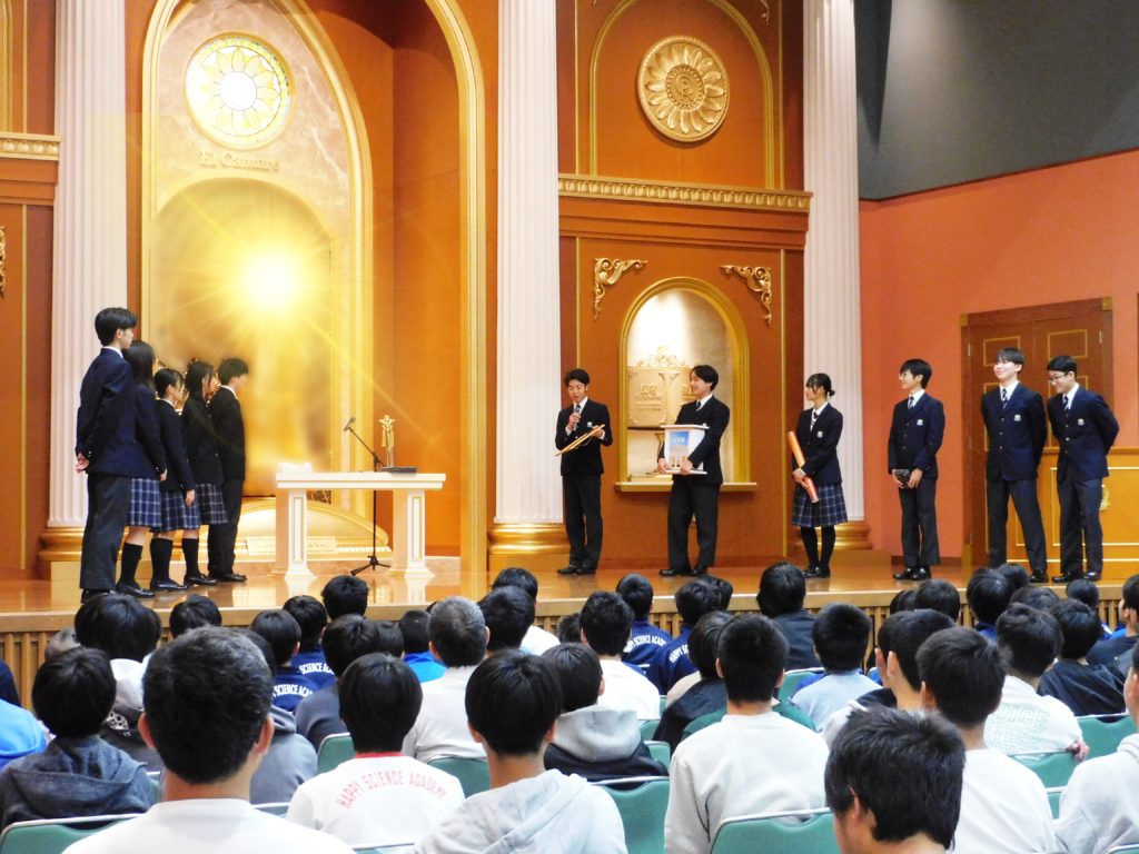 全校生徒会の任期が終了し、新旧交代の継承式を行いました。