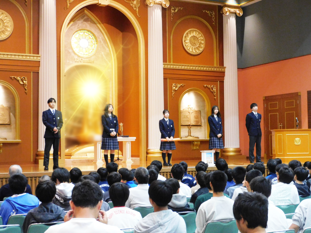 新旧の生徒会役員のメンバーが、ステージに上がり、継承式を行いました。