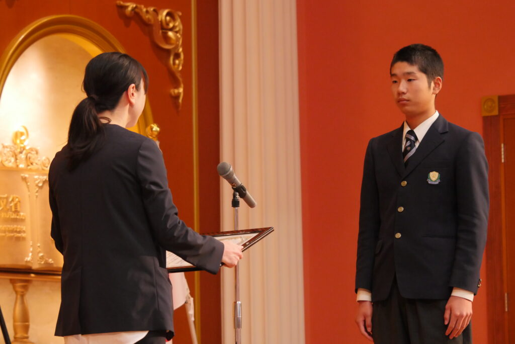 本日の昼食後、全校生徒が記念講堂に集合し、表彰式に臨みました。