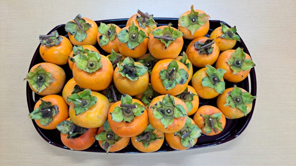 学園に記念樹として植えてあります。今年も柿の実がたくさん実りました。