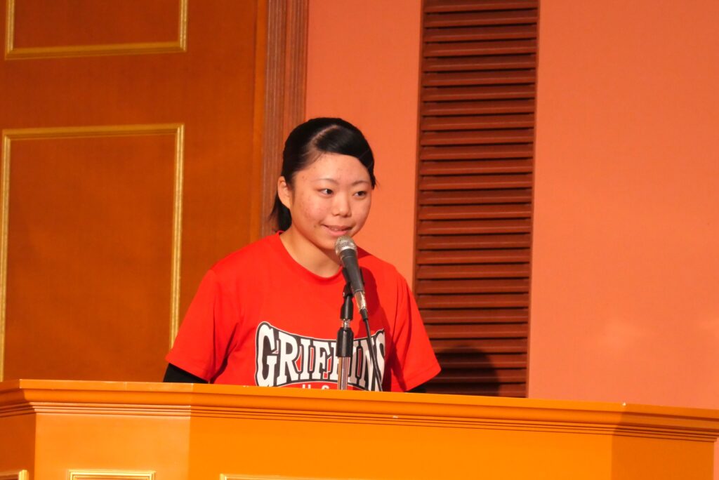 生徒会副会長が、教室配信で応援してくれている全校生徒の思いを代表して、エールを送ってくれました。