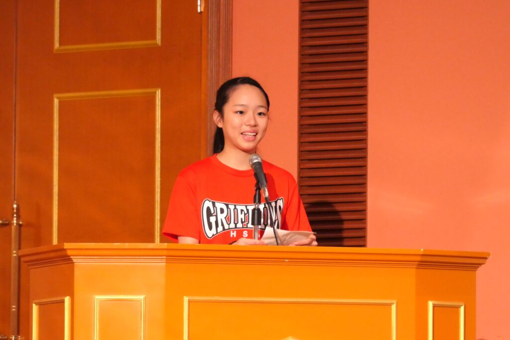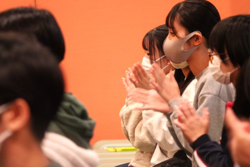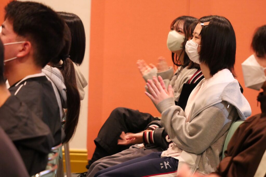 予選の映像が流れると、高校3年生が大きな拍手で祝福しました。