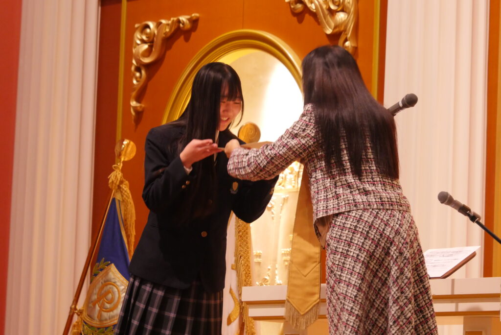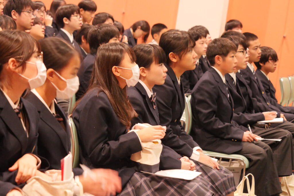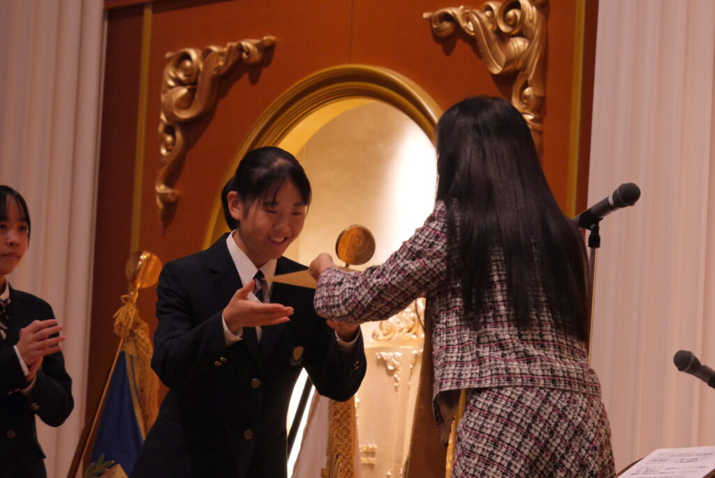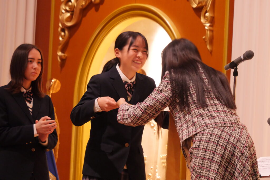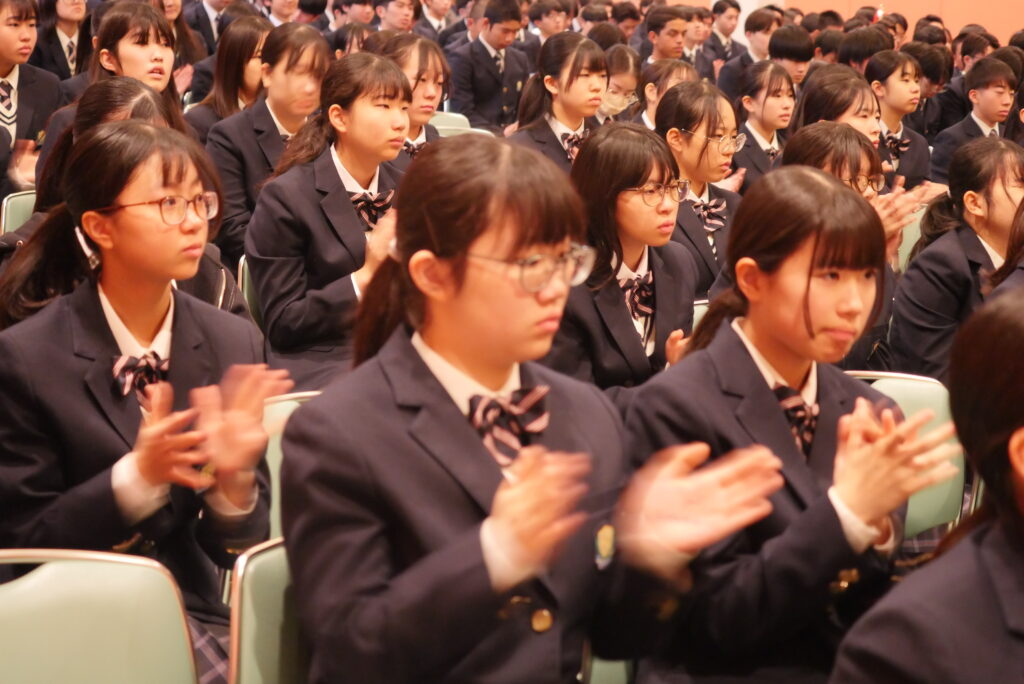 全校生徒が大きな拍手で祝福します。