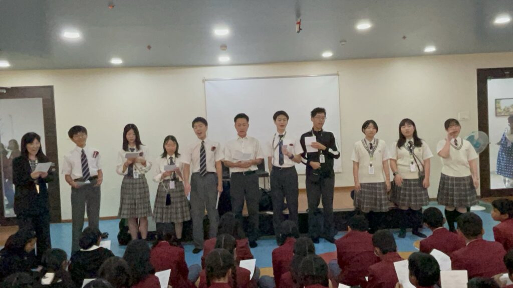 私たちの校歌「未来をこの手に」の英語バージョン「The Future in This Hand」を那須と関西の生徒で歌いました。ここでも、私たちと一緒にSNBPの生徒たちが歌ってくれました。