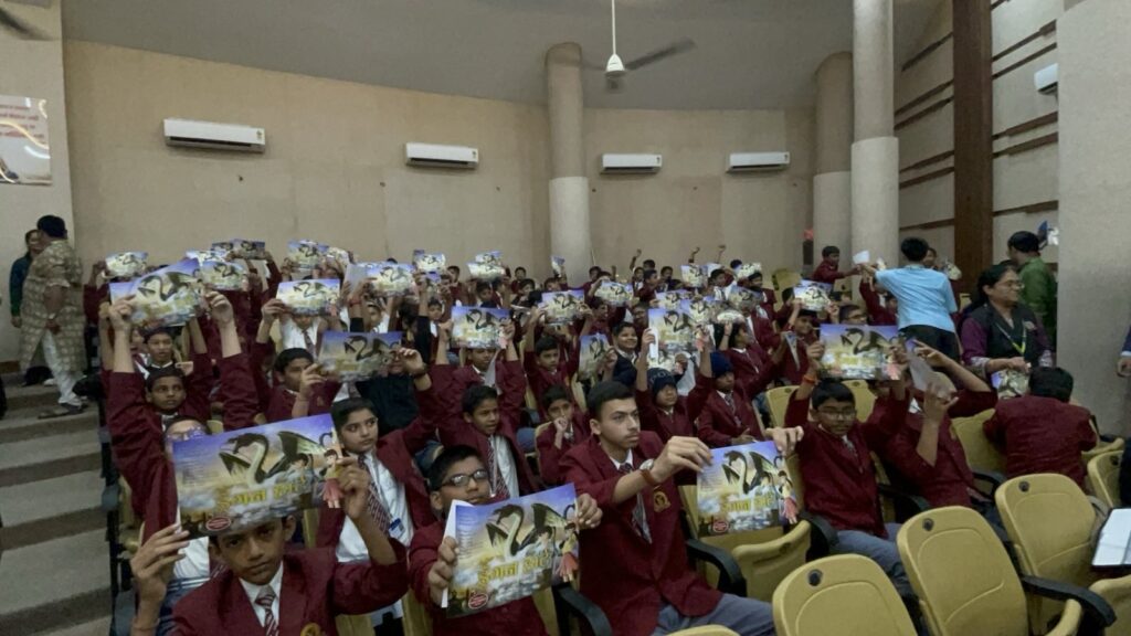 また、映画「ドラゴン・ハート」のインドでのテレビ放映が決定したため、テレビ放送の案内のチラシを配布したら、私は何も言っていなかったのですが、なんと、その場でチラシを全員が掲げてくれました。