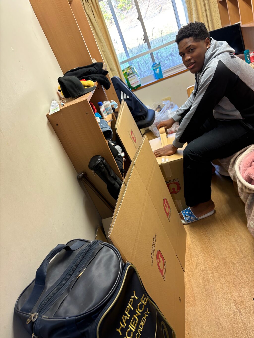 プロ野球選手となったエミール君は、明日、荷物を福岡ソフトバンクホークスの寮に送ります。