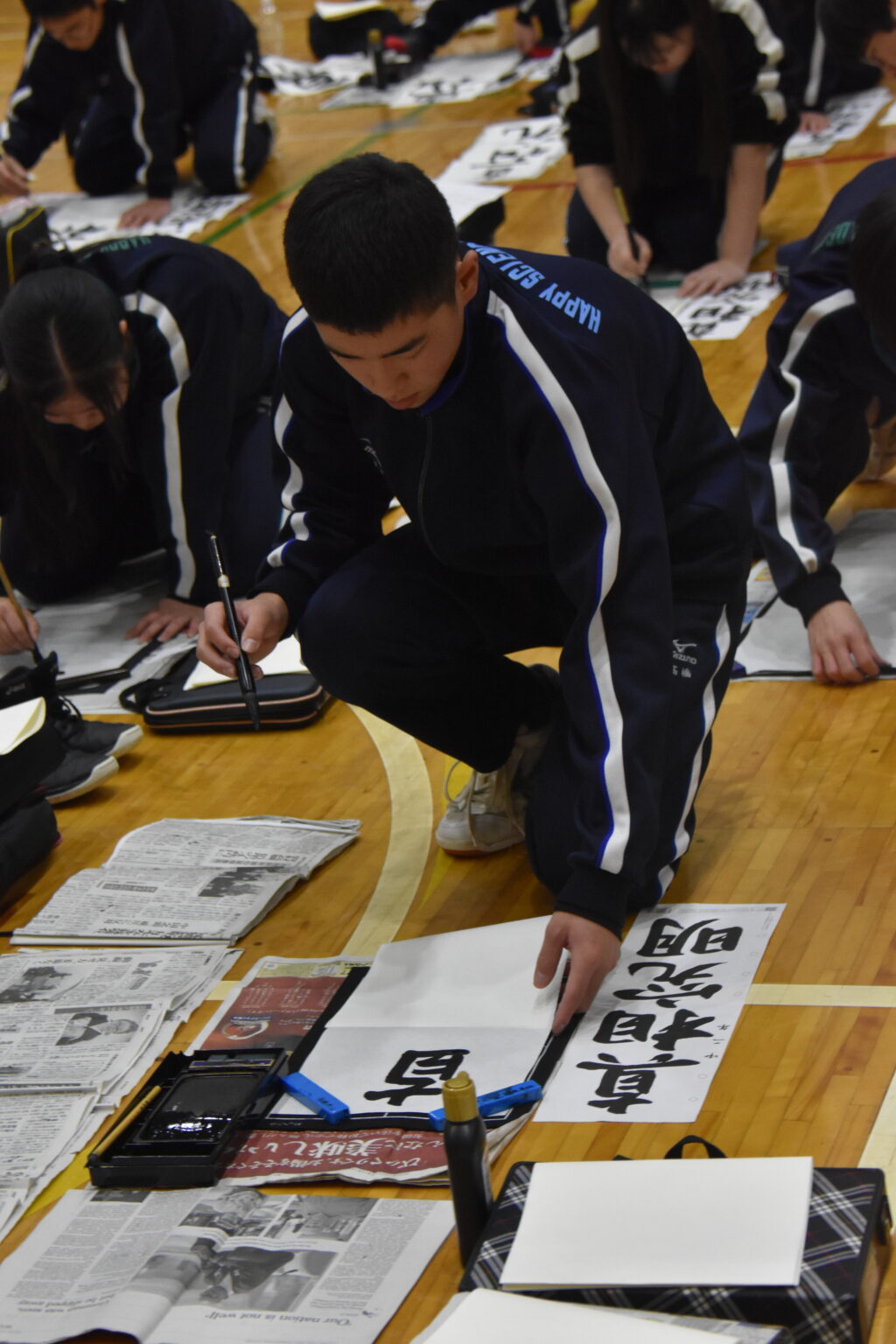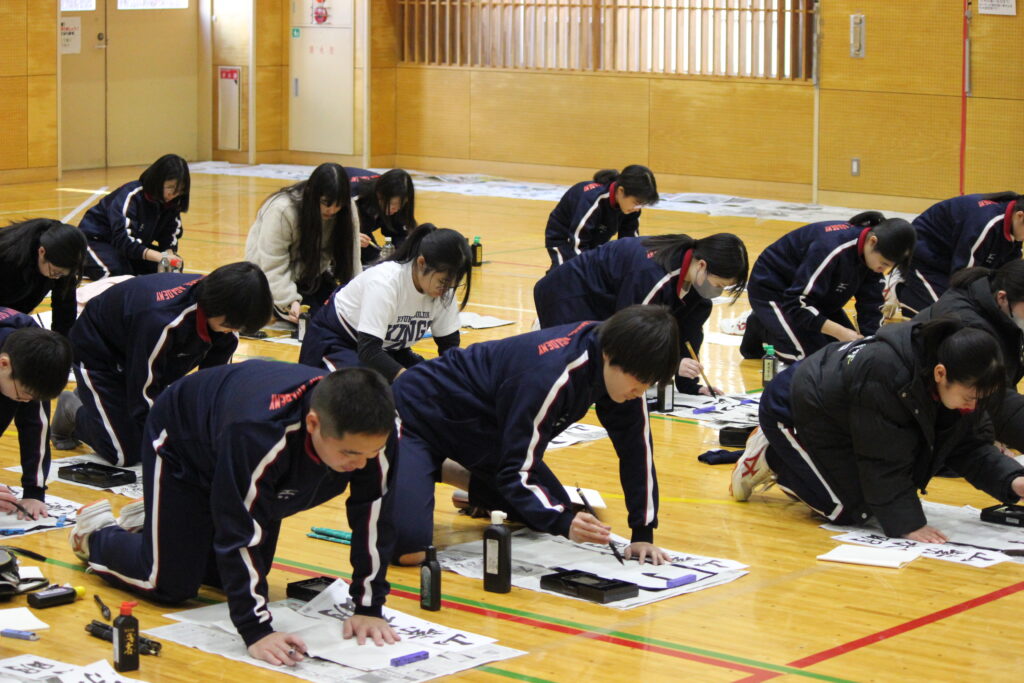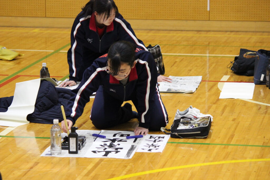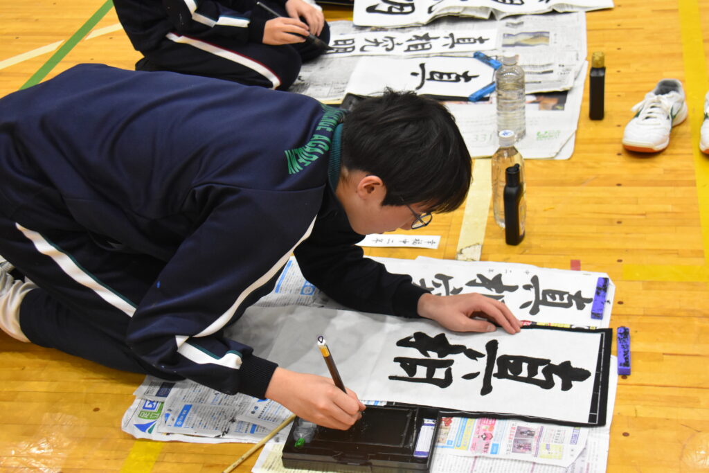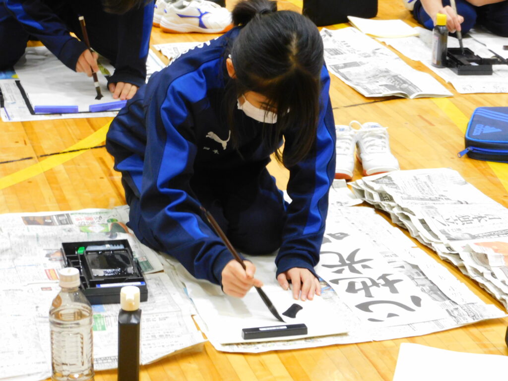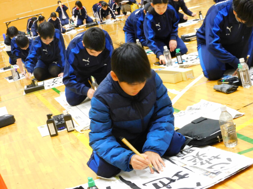 中学生たちが「書き初め」を行いました。