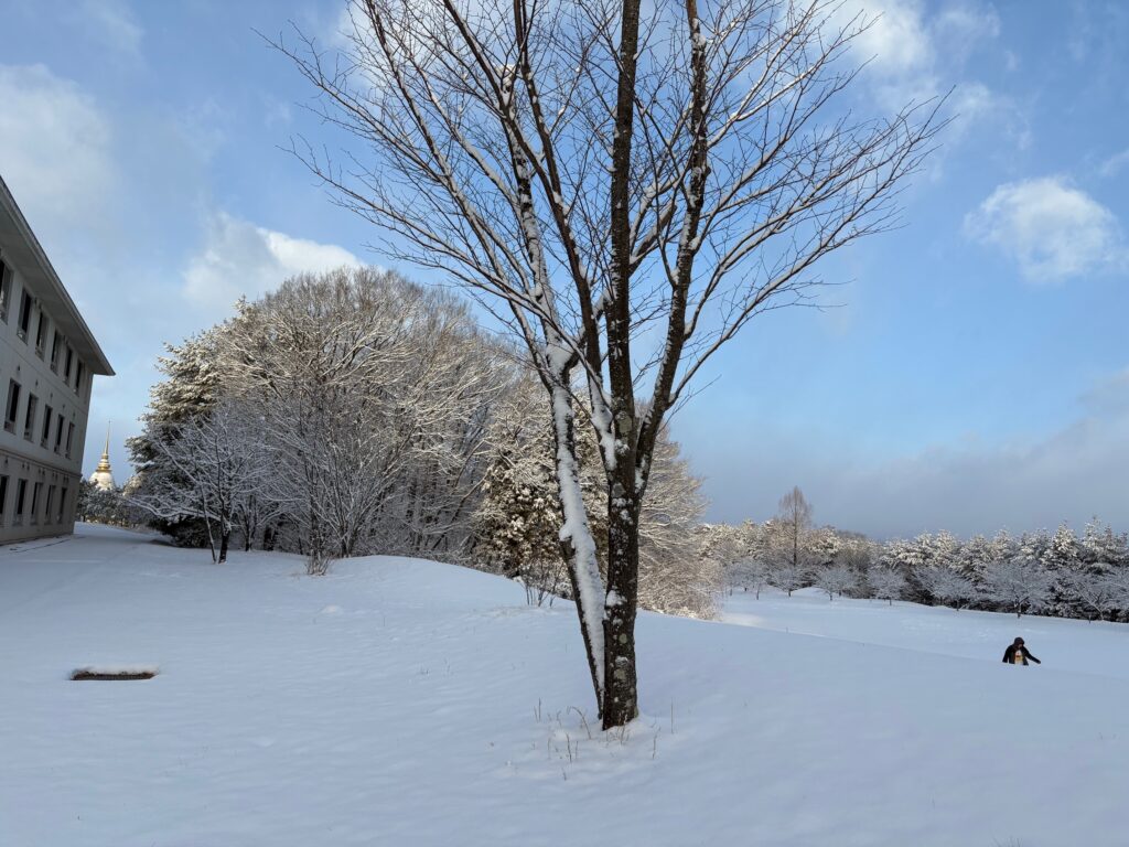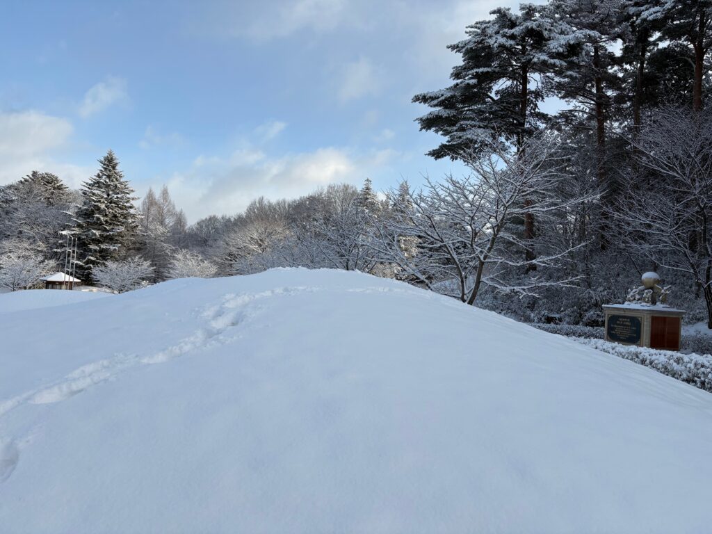 雪が積もりました 2026.01.12 1月12日は成人の日。学園もお休みです。 早朝から降り続いた雪が、朝8時の時点で積もっています。 全国的に、強烈寒波のピークで寒さが一段と強まっています。 雪はやみましたが、交通への影響に気をつけ、過ごしたいと思います。