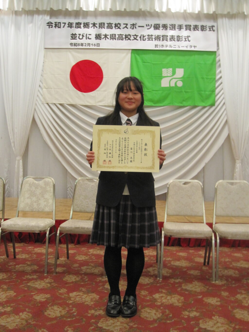 栃木県高等学校文化連盟、並びに公共財団法人「野沢一郎育英会」主催による授賞式が行われました。県内の高校生で、全国3位以内の実績を出された生徒や学校を表彰します。