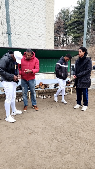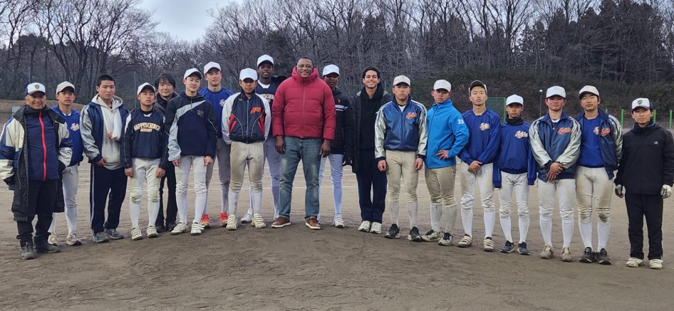 ドミンゴさんは、2002年頃から横浜ベイスターズや、中日ドラゴンズなどで活躍した、元日本のプロ野球選手です。グラウンドで、野球部たちの練習をみてくださいました。