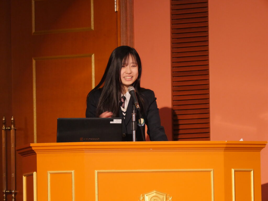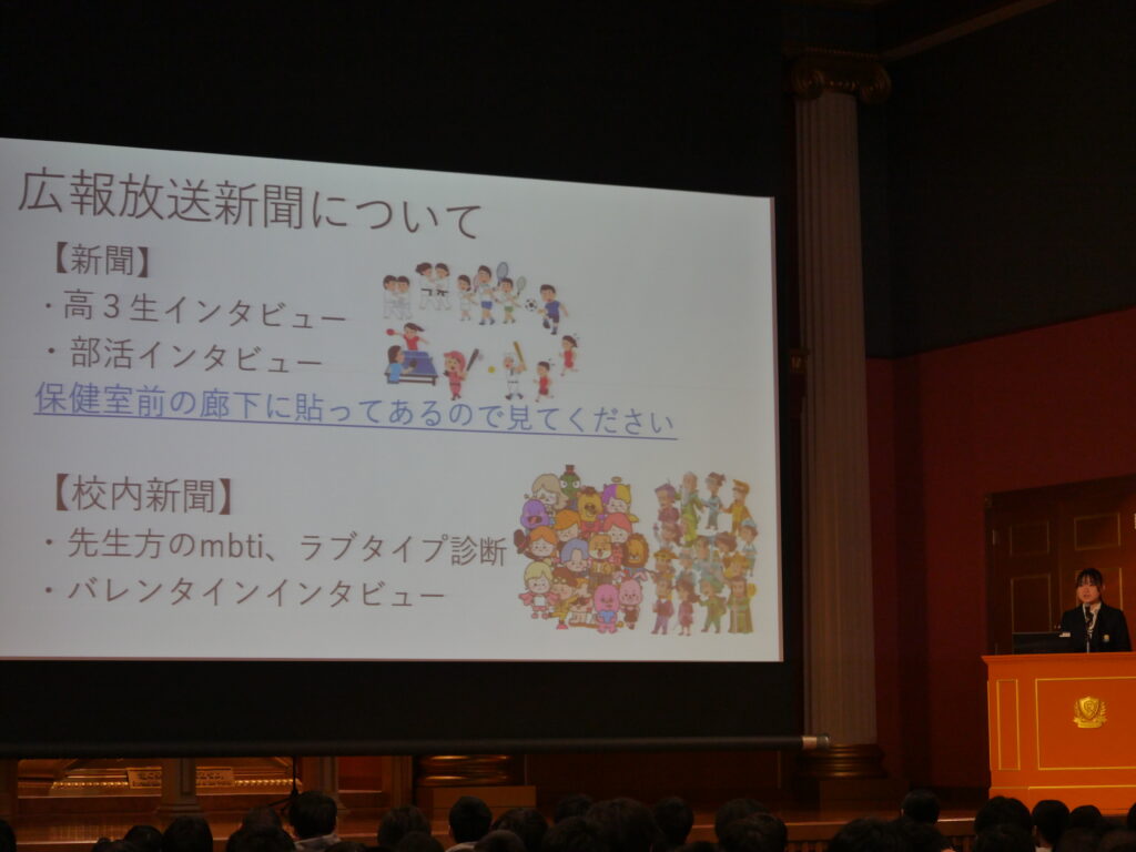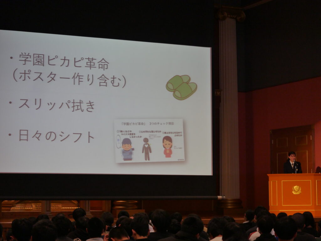 今朝は、朝の祈りの後、生徒会主催の生徒朝礼を行いました。