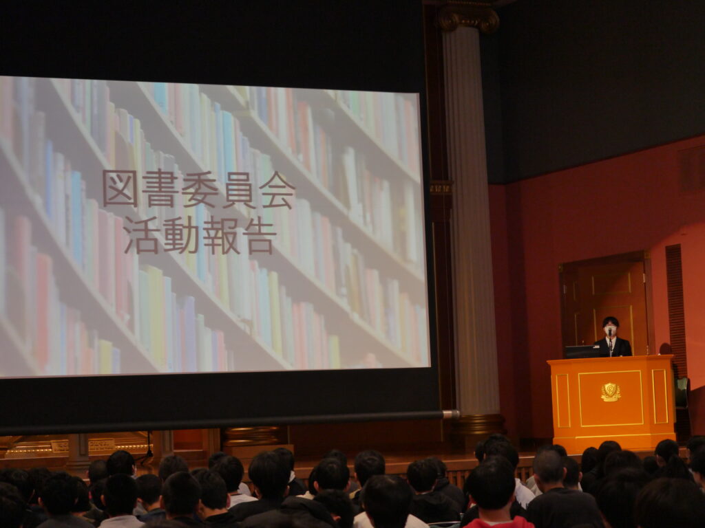 生徒たちは委員会に所属し、中学生高校生が一緒に前期、後期と務めます。通年の委員会もあります。