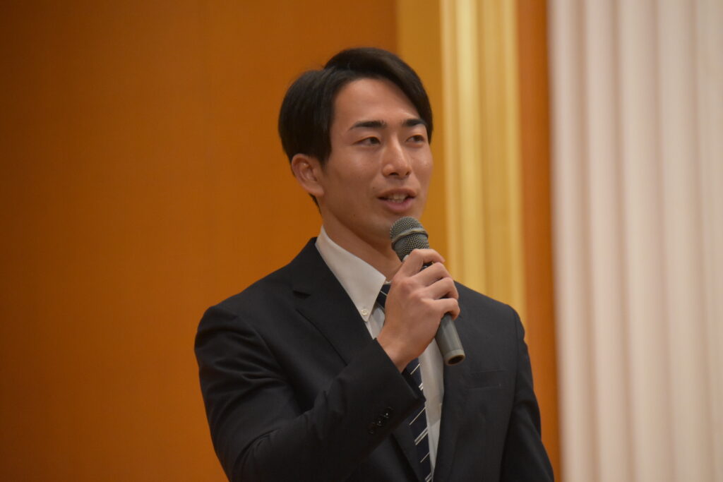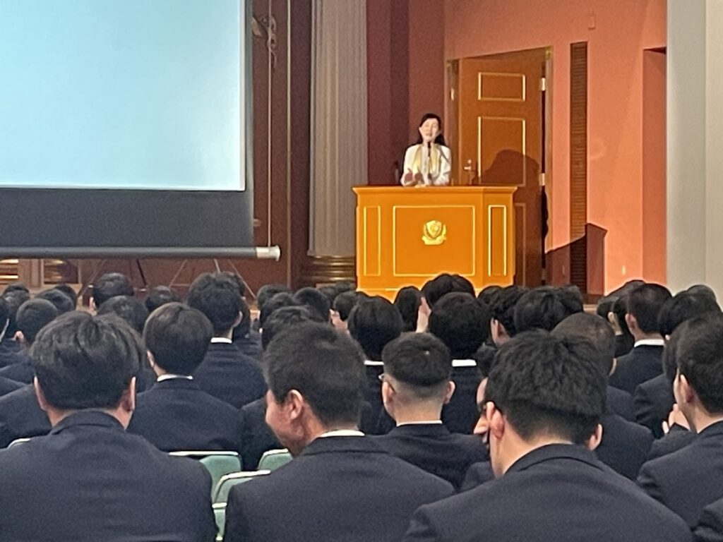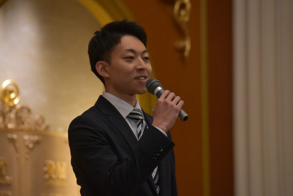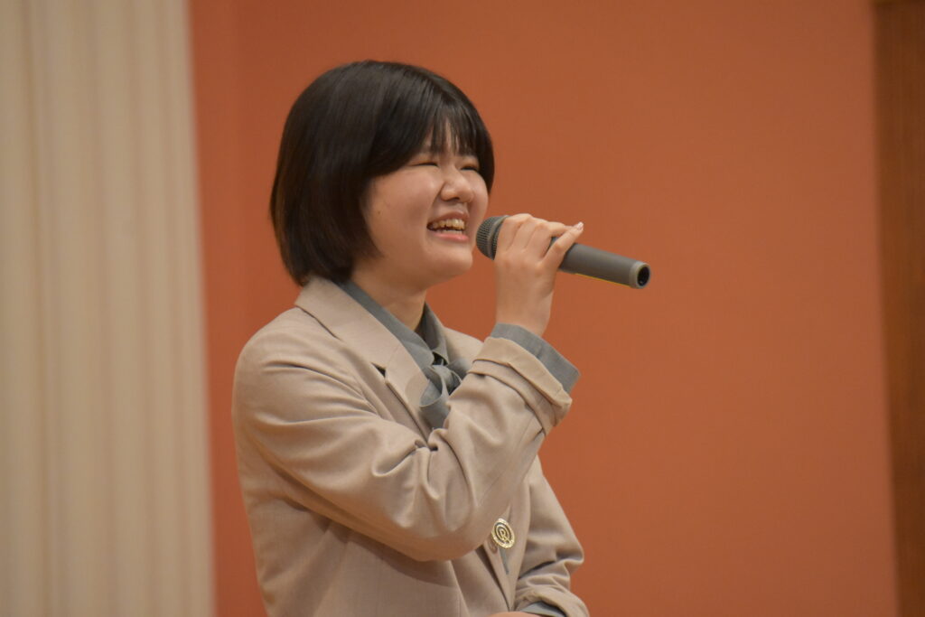 今年は3名です。ステージに上がって、生徒の前で自己紹介をいたしました。