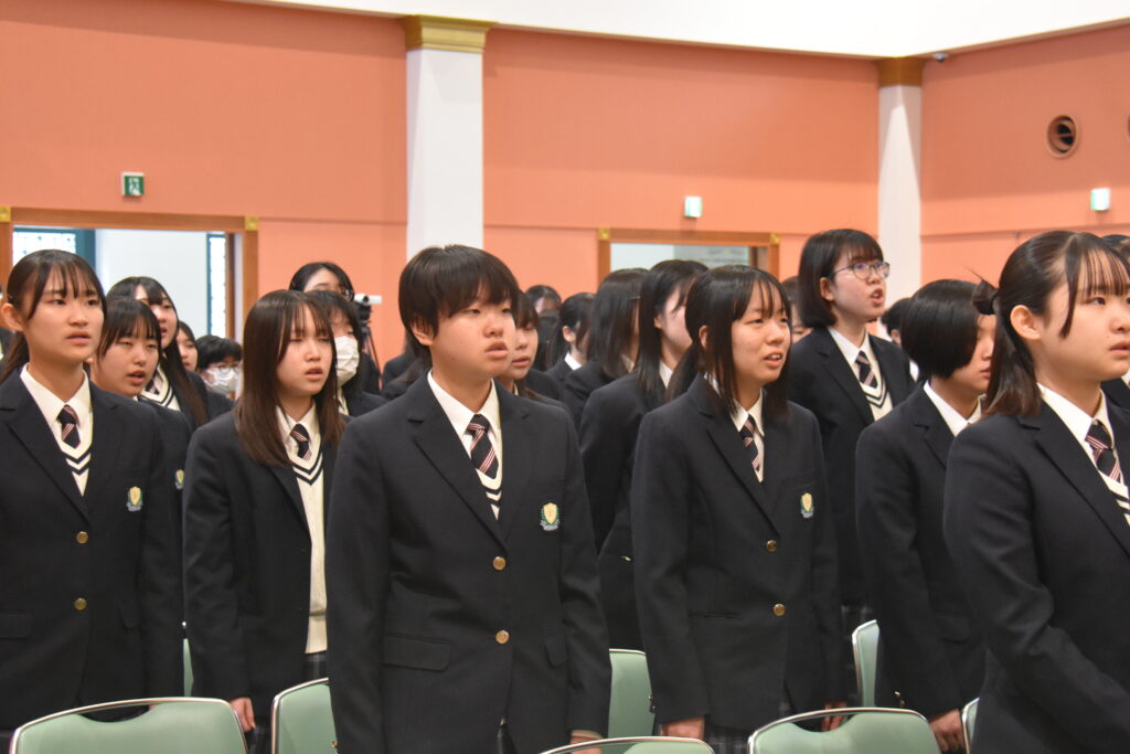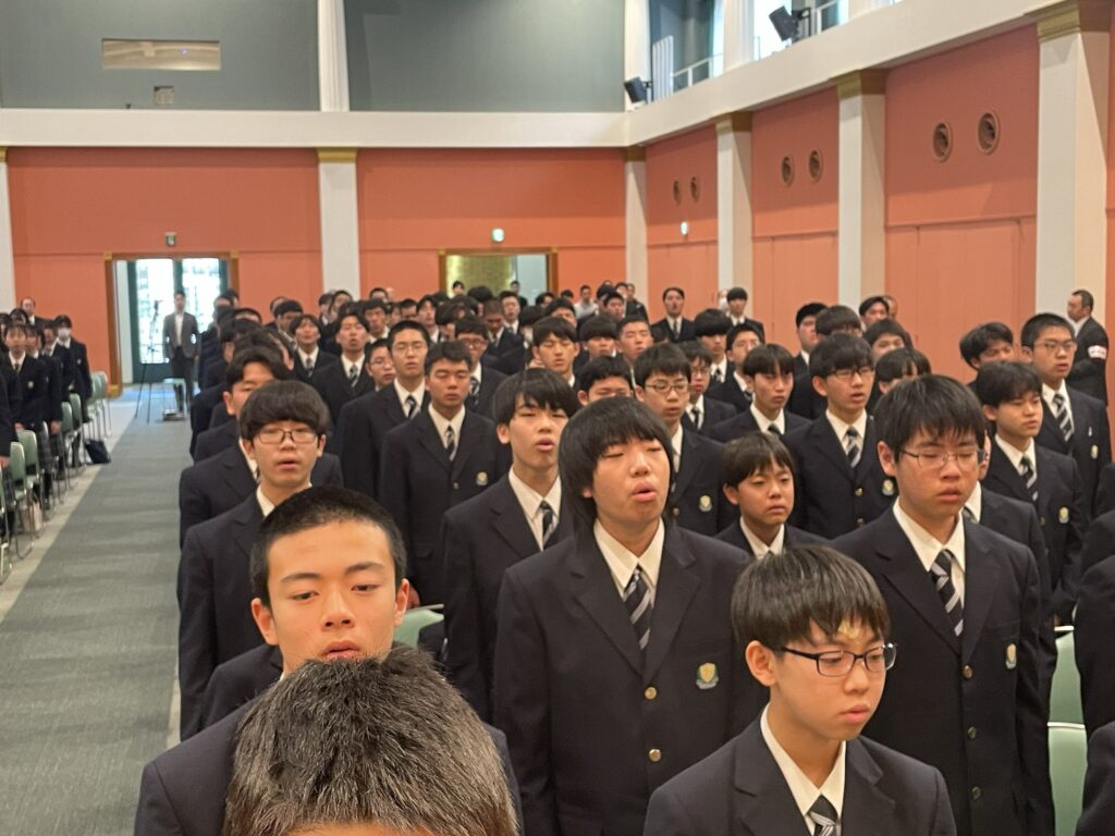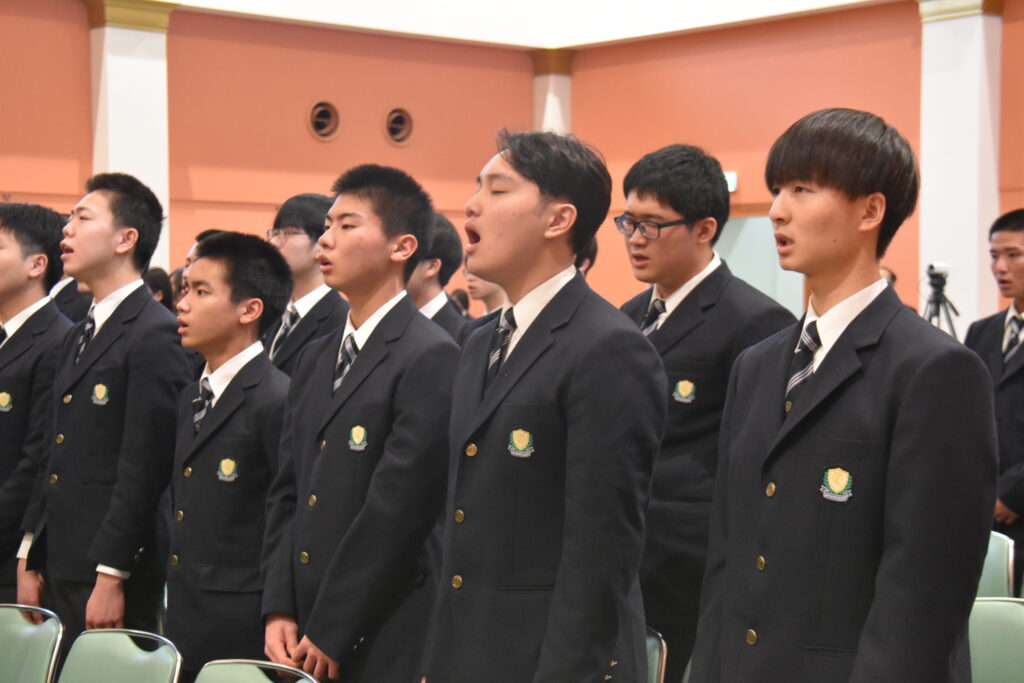 始業式の最後は、全員で校歌「未来をこの手に」を斉唱しました。