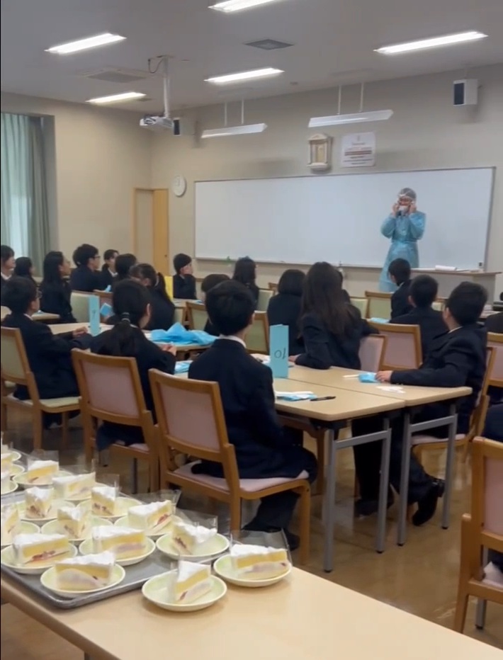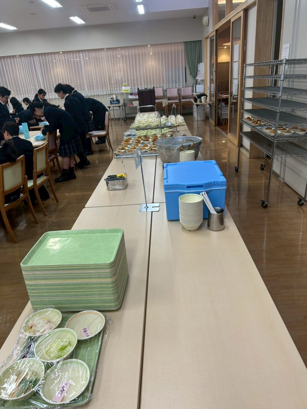 今日からカフェテリア学習室にて、中学1年生がそろって昼食をいただきます。